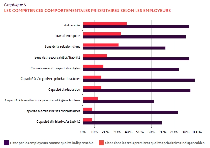 La figure 5 du document rendu public liste les 10 compétences comportementales qui sont considérées comme prioritaires aux yeux des employeurs.